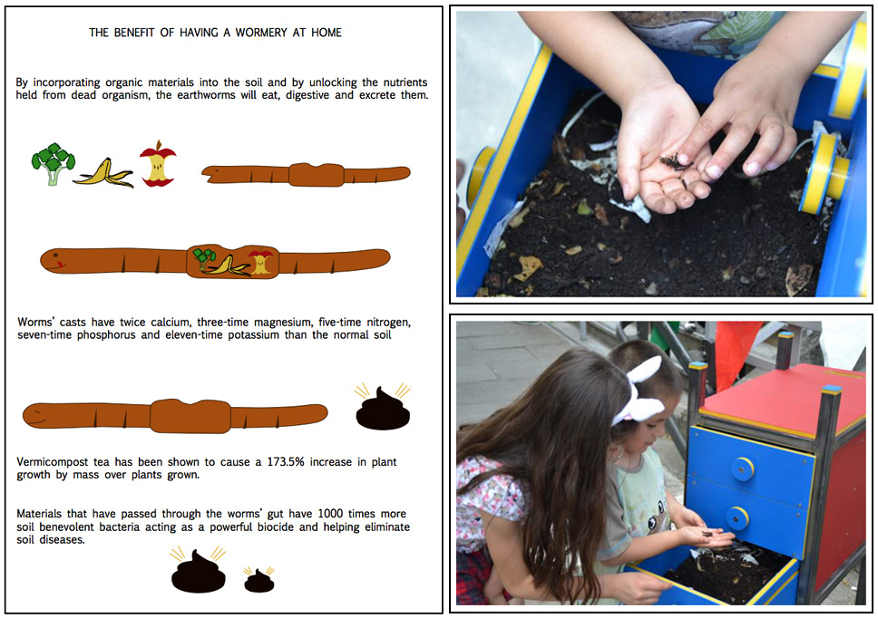 The main purpose of Gaia Cabinet is to bring attention on important issues through play, positivity, happiness and colours instead of seriousness and gloominess. I believe that if important issues such as food waste, healthy eating, respect to the environment and the importance of earthworms for our lives are explained in a more playful and interacting way, children are more likely to understand the importance of them.
